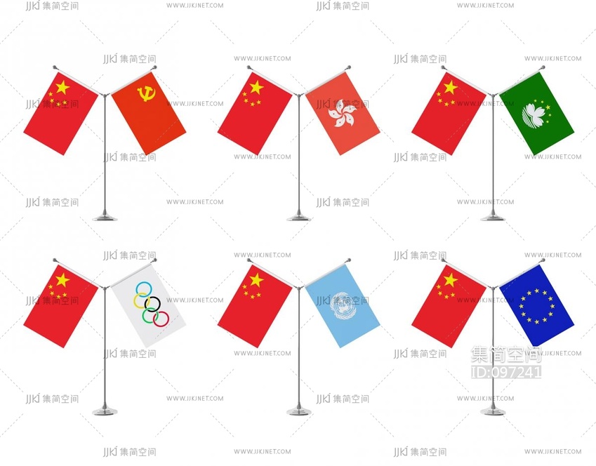 现代国旗旗帜摆件 3d模型下载 [模型ID:97241]