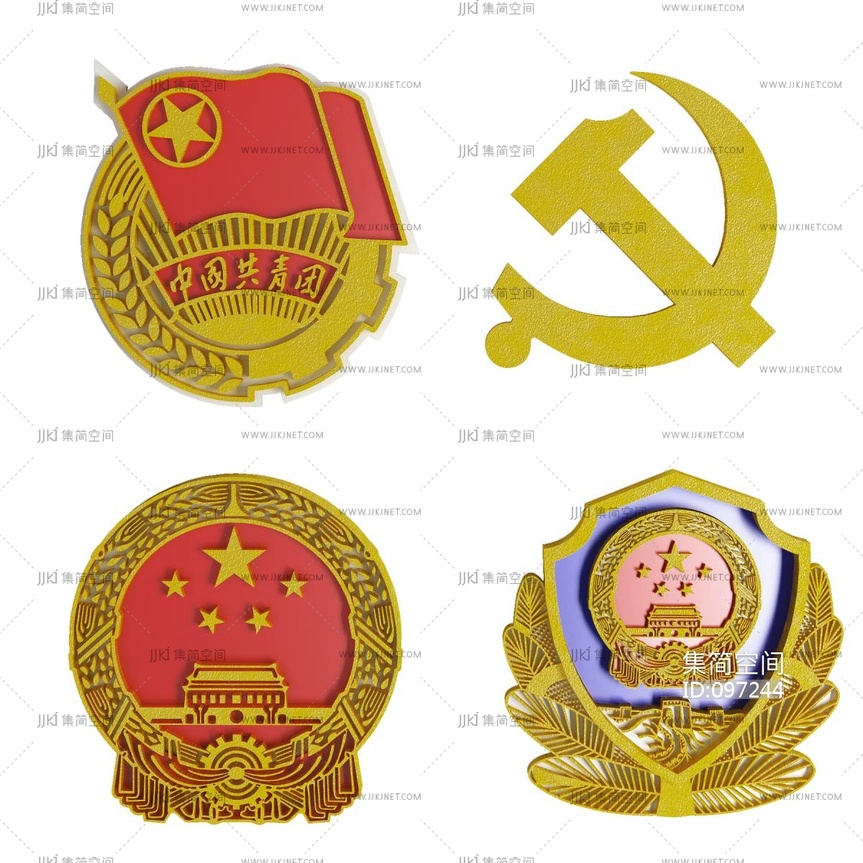 现代国徽,党徽,公安徽章 3d模型下载 [模型ID:97244]