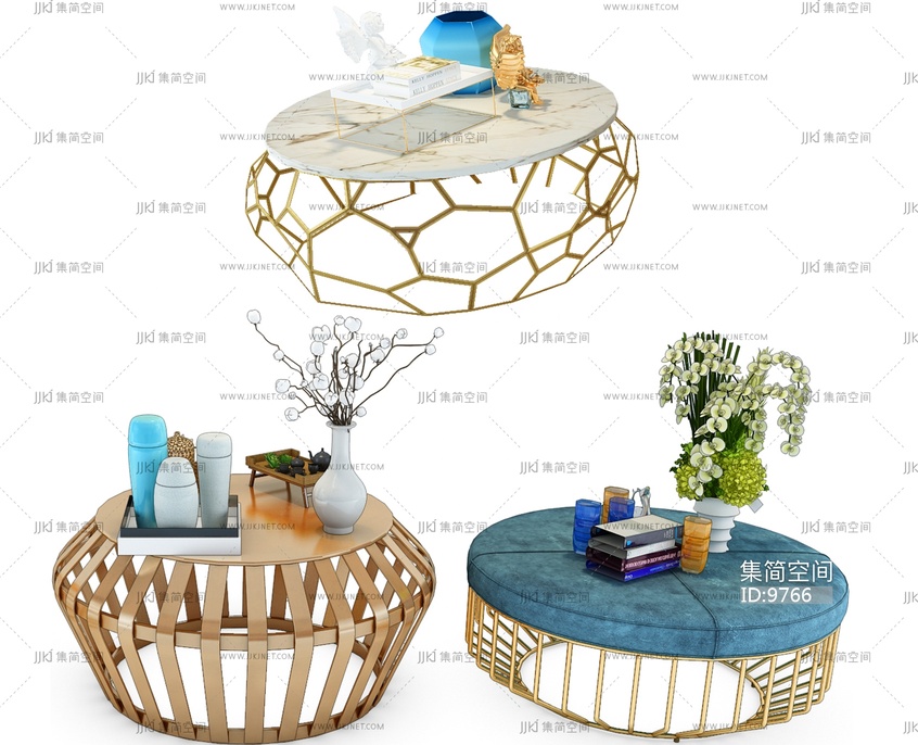 H05-1031现代金属茶几摆件组合 3d模型下载 [模型ID:9766]