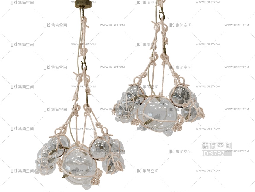 麻绳玻璃球吊灯下载 3d模型下载 [模型ID:9792]