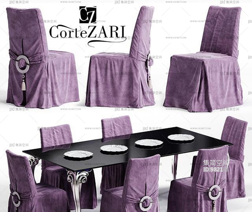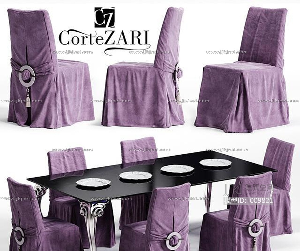 欧式餐桌椅组合宴会椅 3d模型下载 [模型ID:9821]