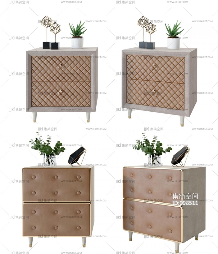 现代方形皮革床头柜组合 3d模型下载 [模型ID:98511]