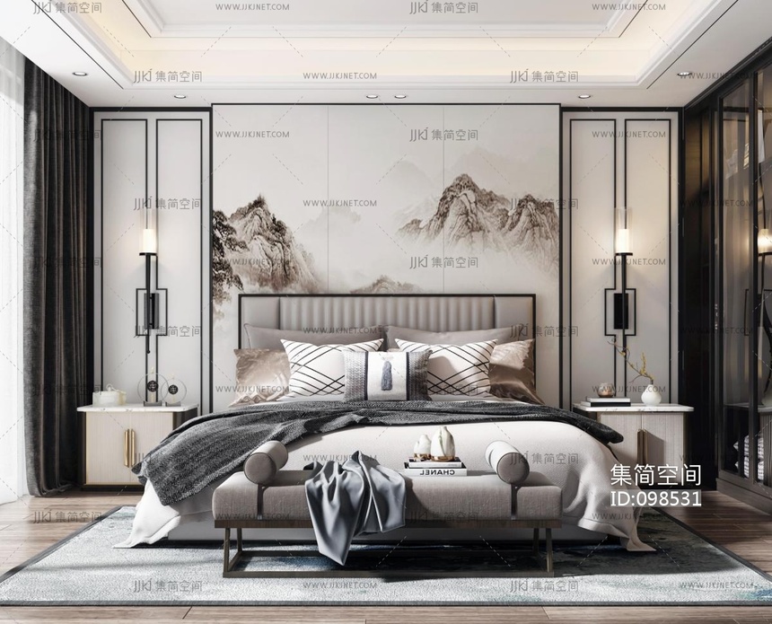 新中式卧室 3d模型下载 [模型ID:98531]
