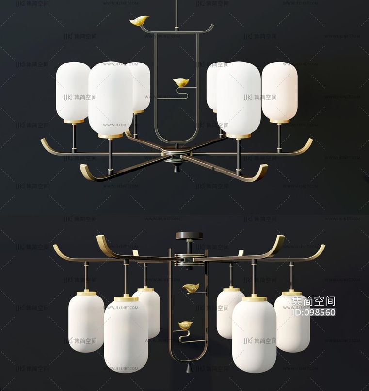 新中式金属多头吊灯 3d模型下载 [模型ID:98560]