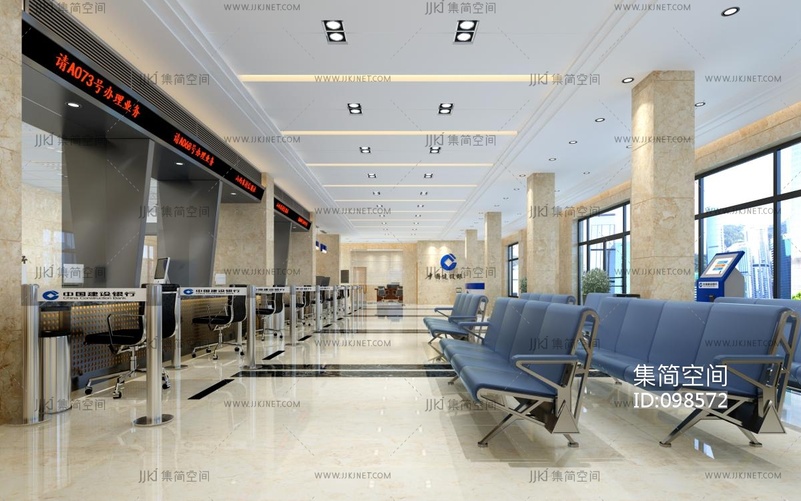 现代建设银行营业厅, 3d模型下载 [模型ID:98572]