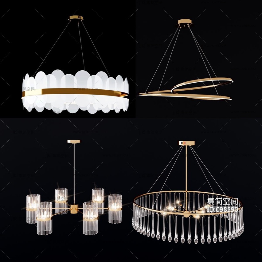 现代金属水晶吊灯 3d模型下载 [模型ID:98590]