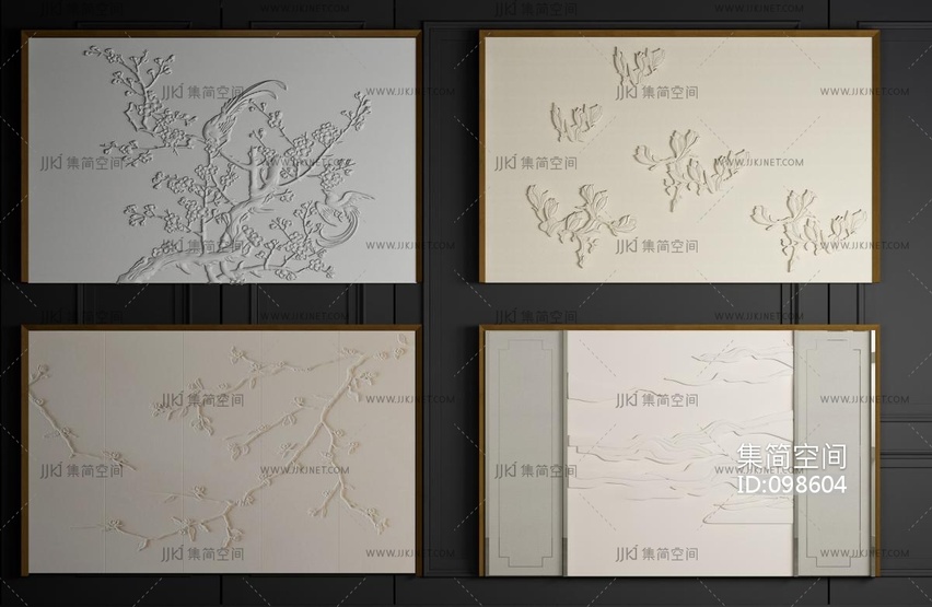 新中式皮革浮雕硬包软包背景墙 3d模型下载 [模型ID:98604]
