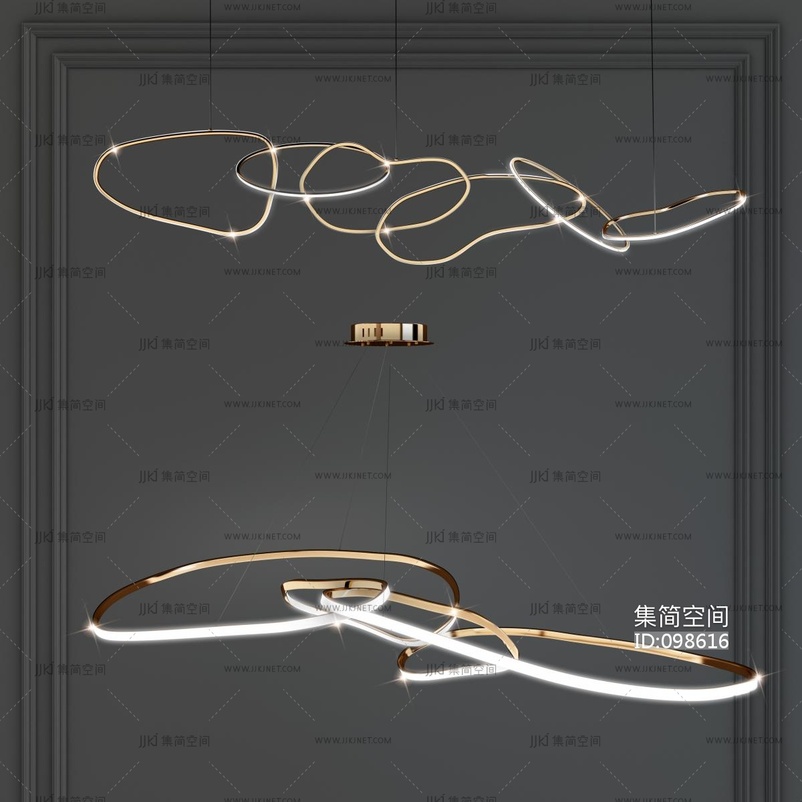 现代环形异形金属吊灯 3d模型下载 [模型ID:98616]