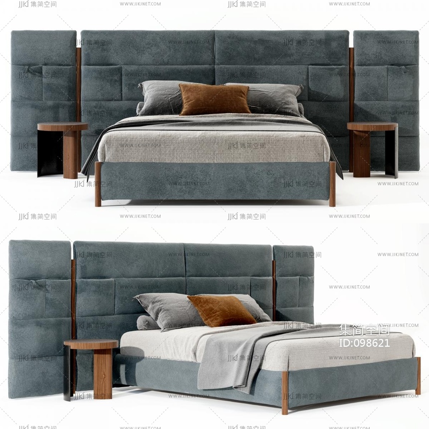现代绒布皮革双人床 3d模型下载 [模型ID:98621]