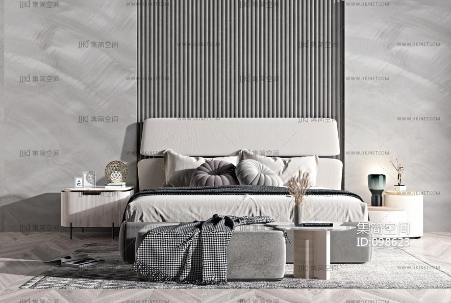 现代布艺双人床 3d模型下载 [模型ID:98623]