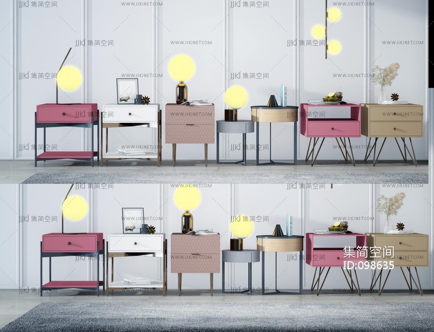 现代床头柜组合_床头柜_ 3d模型下载