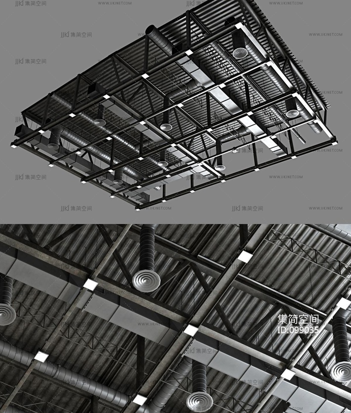 工业风舞台钢架顶棚管道 3d模型下载 [模型ID:99035]
