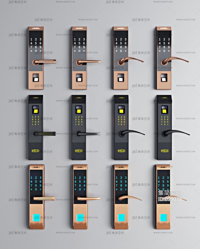 现代指纹锁门把手密码锁, 3d模型下载 [模型ID:99038]