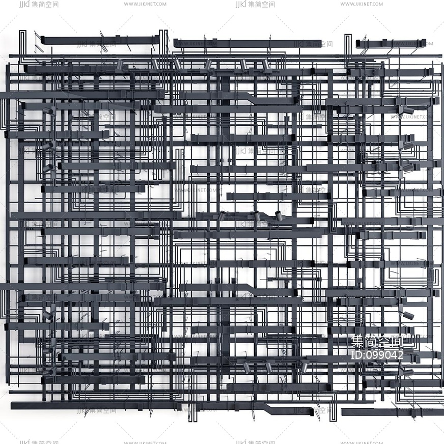 工业风通风管线槽线管天花轨道灯,管道组合 3d模型下载 [模型ID:99042]