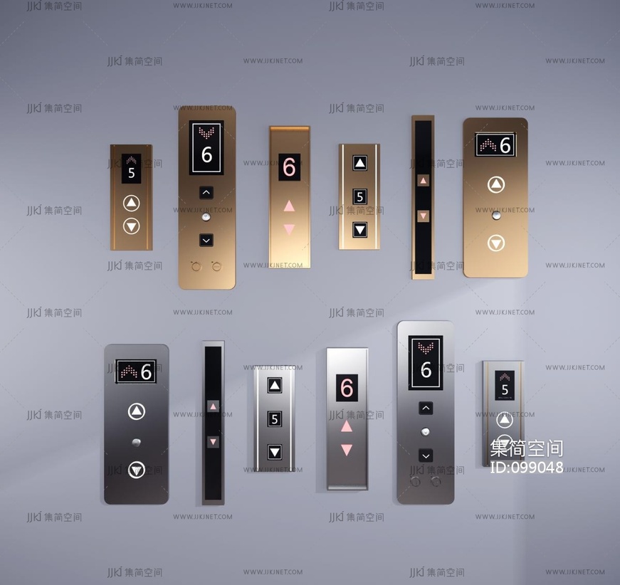 现代不锈钢电梯开关,按钮 3d模型下载 [模型ID:99048]