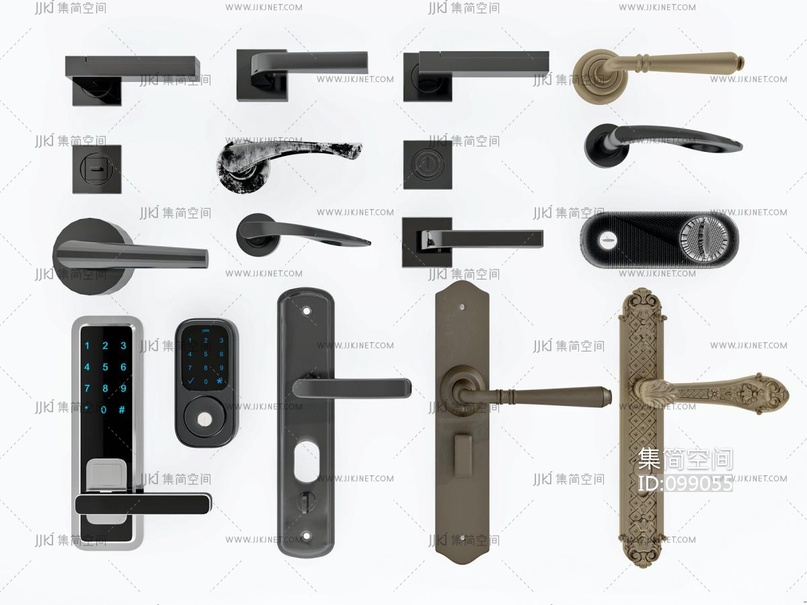 现代门锁把手,门拉手组合 3d模型下载 [模型ID:99055]
