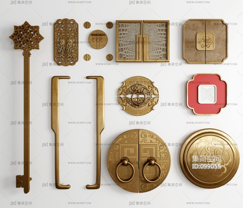 中式金属雕花门把手门拉手 3d模型下载 [模型ID:99059]