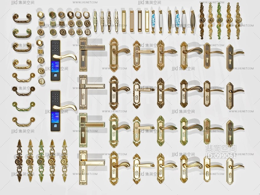 欧式雕花门把手抽屉拉手 3d模型下载 [模型ID:99061]