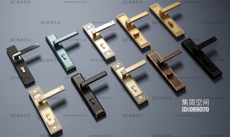 新中式门锁门拉手门把手 3d模型下载 [模型ID:99070]