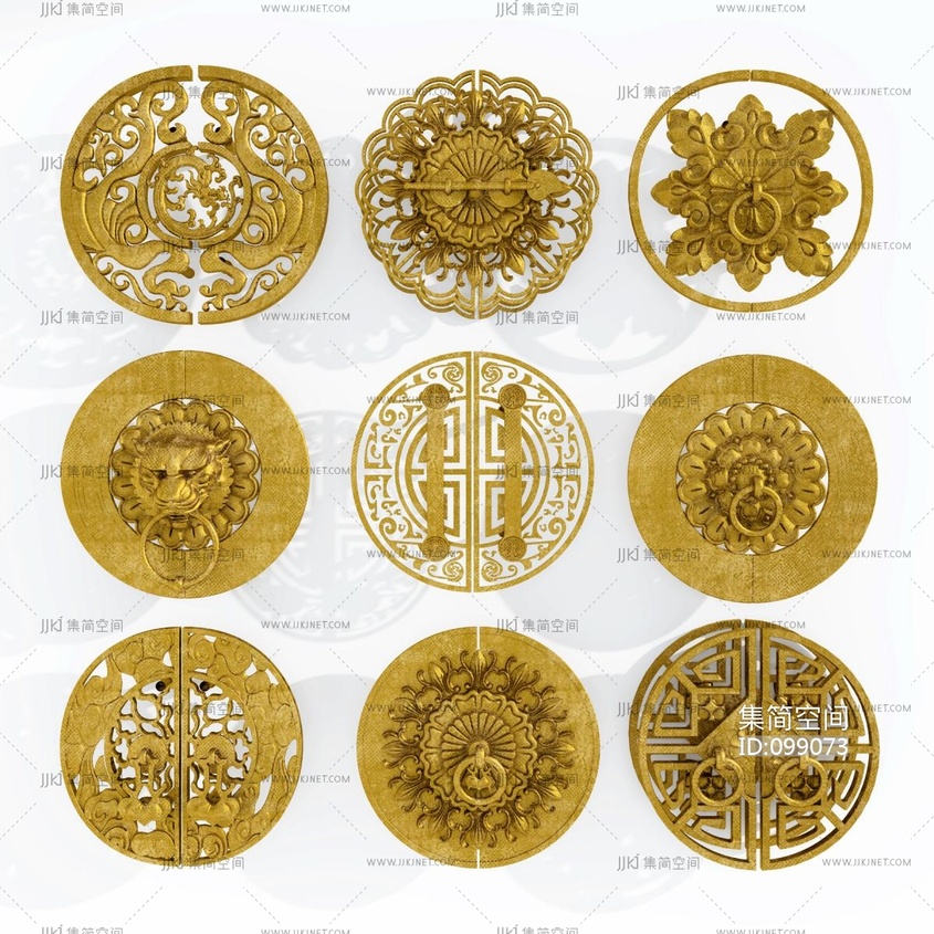 中式大门雕花拉手,门拉手 3d模型下载 [模型ID:99073]