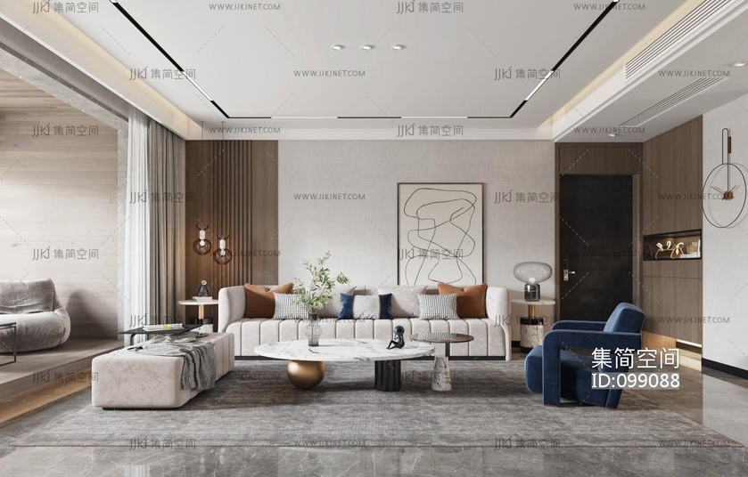 现代轻奢客餐厅,沙发茶几 3d模型下载 [模型ID:99088]