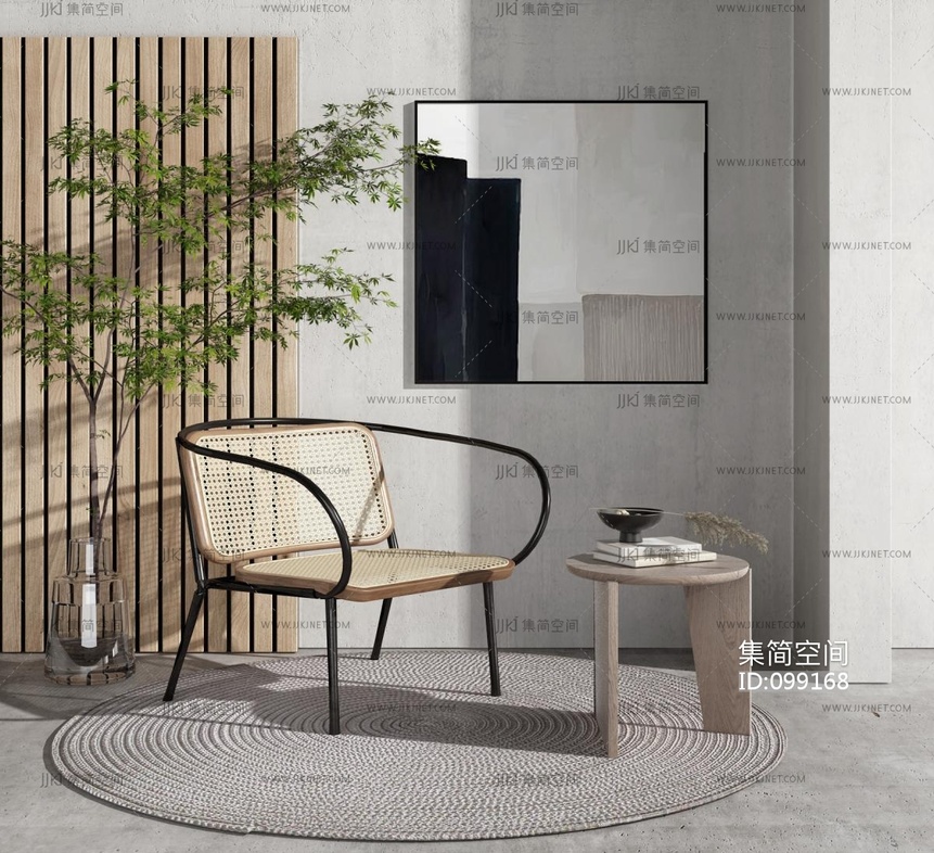 北欧户外藤编休闲椅边几组合 3d模型下载 [模型ID:99168]