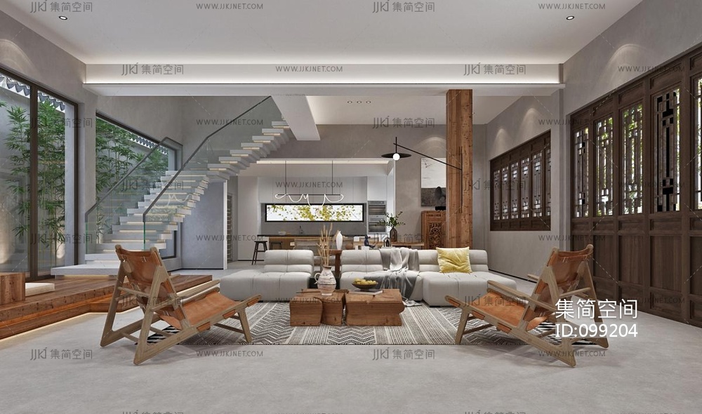 现代民宿客厅餐厅 3d模型下载 [模型ID:99204]
