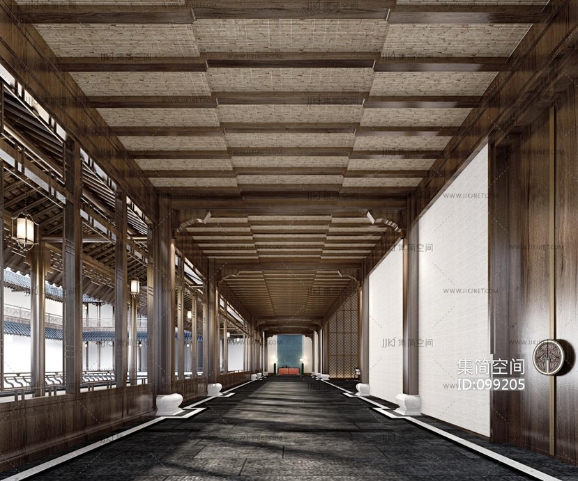 新中式古建走廊走道,过道 3d模型下载 [模型ID:99205]