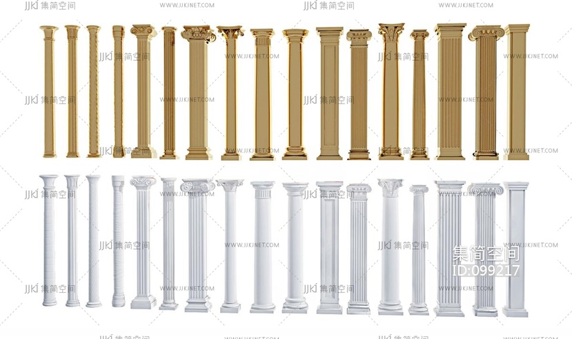 欧式石膏镀金罗马柱 3d模型下载 [模型ID:99217]