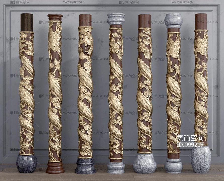 中式盘龙雕花柱子 3d模型下载 [模型ID:99219]