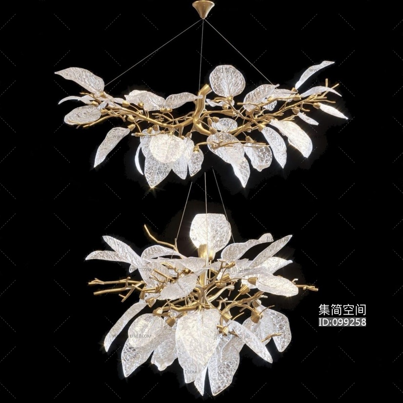 现代轻奢水晶叶片树叶装饰吊灯 3d模型下载 [模型ID:99258]