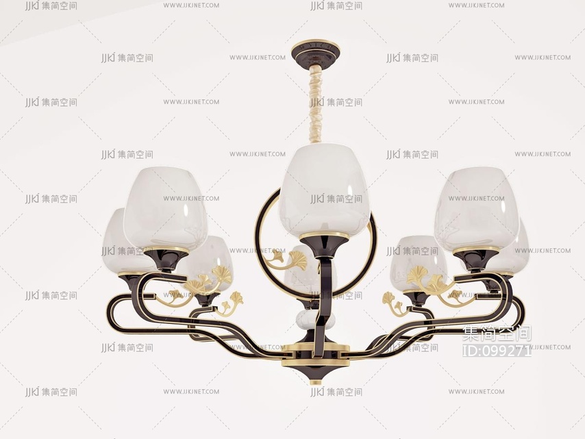 新中式轻奢铁艺多头吊灯 3d模型下载 [模型ID:99271]