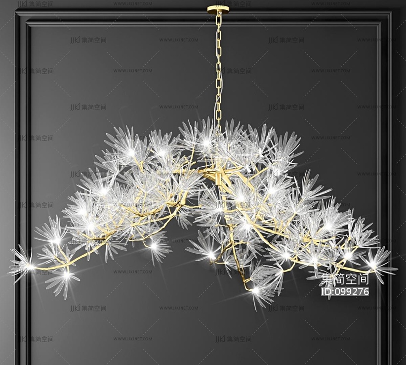 新中式金属松树水晶装饰吊灯 3d模型下载 [模型ID:99276]