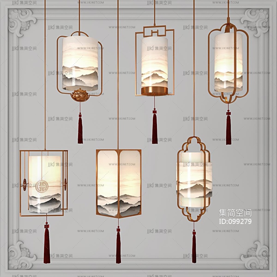 新中式金属小吊灯 3d模型下载 [模型ID:99279]