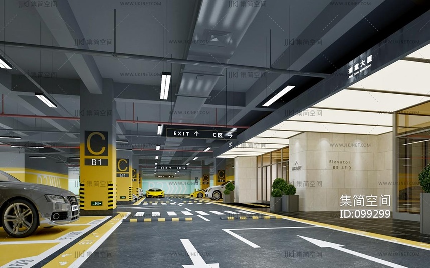 现代地下车库, 3d模型下载 [模型ID:99299]