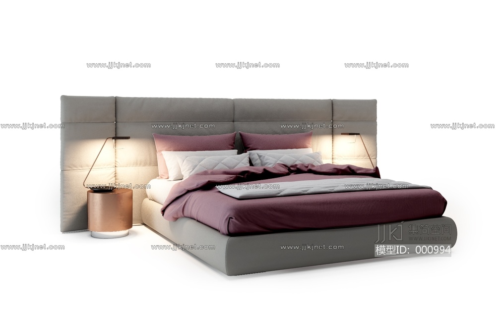 09-意式轻奢双人床_意式双人床_米洛提双人床_双人床_床靠背3D模型2vrrrr3d模型下载