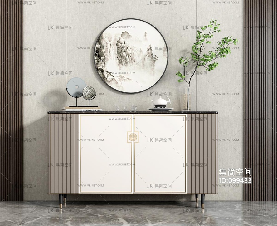 新中式玄关柜,摆件,墙饰 3d模型下载 [模型ID:99433]