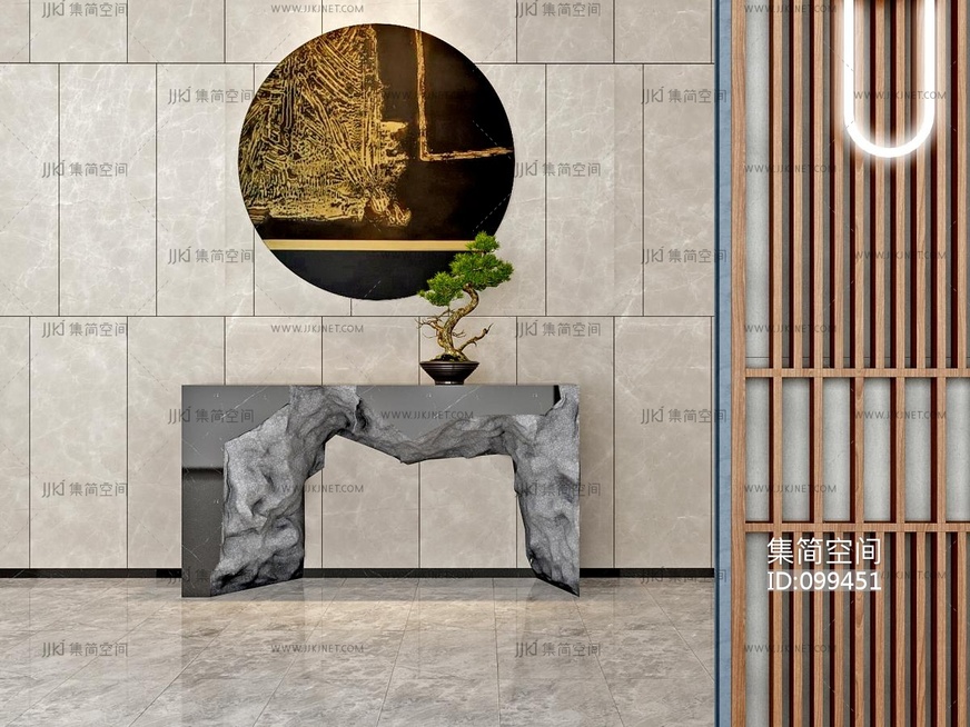 新中式石头玄关端景台摆台 3d模型下载 [模型ID:99451]