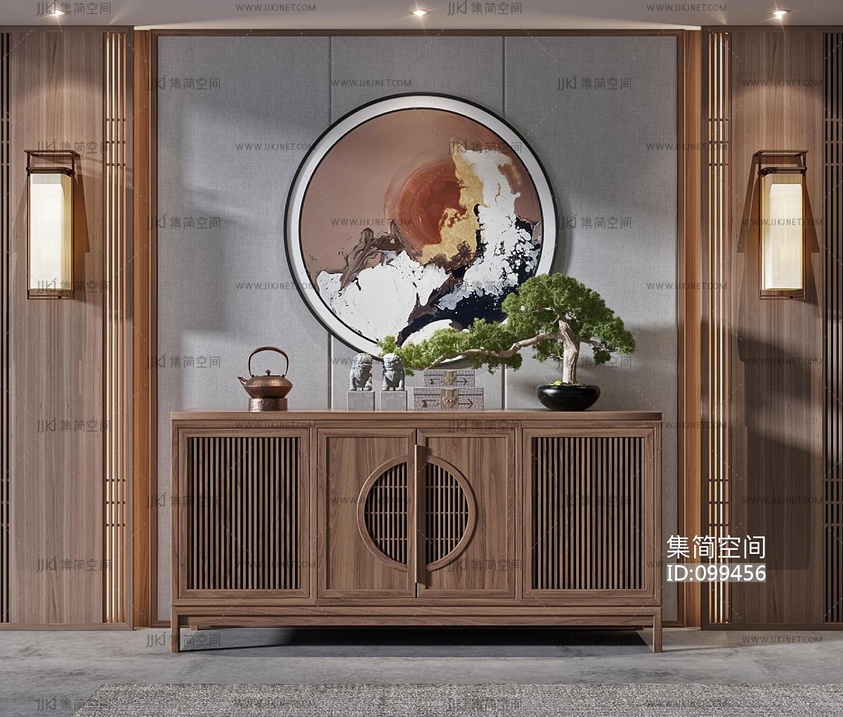 新中式古典实木,餐边柜 3d模型下载 [模型ID:99456]