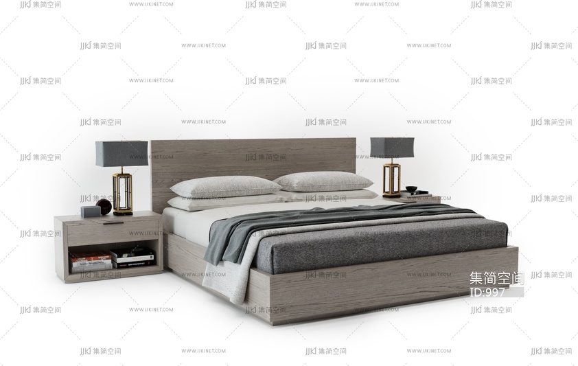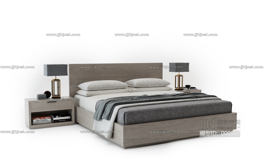 02-13现代床 3d模型下载 [模型ID:997]