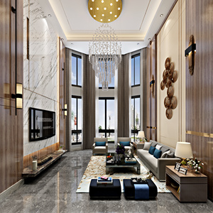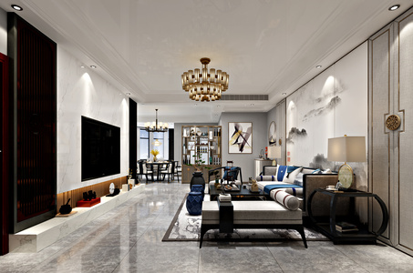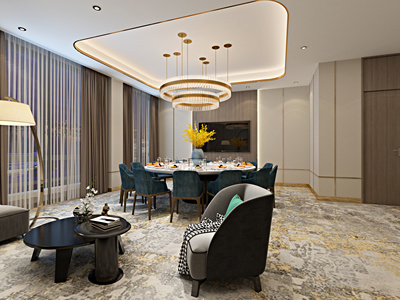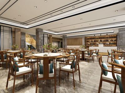 新中式餐饮店 餐桌 楼梯 雕塑 吧台 酒柜