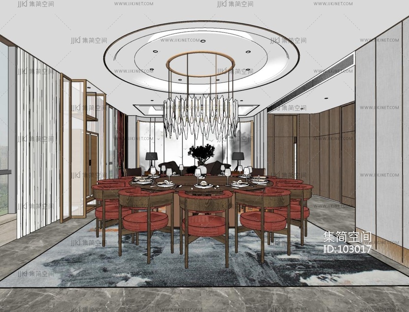 新中式餐厅包间 su草图模型下载 [模型ID:103017]