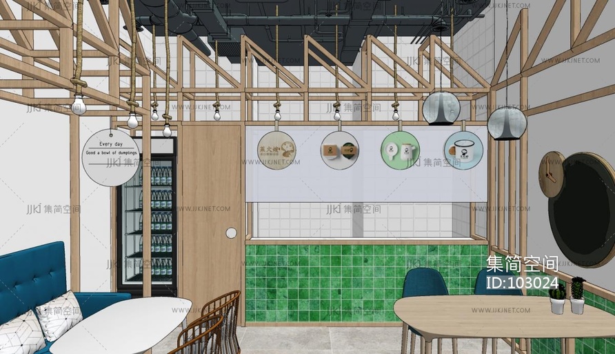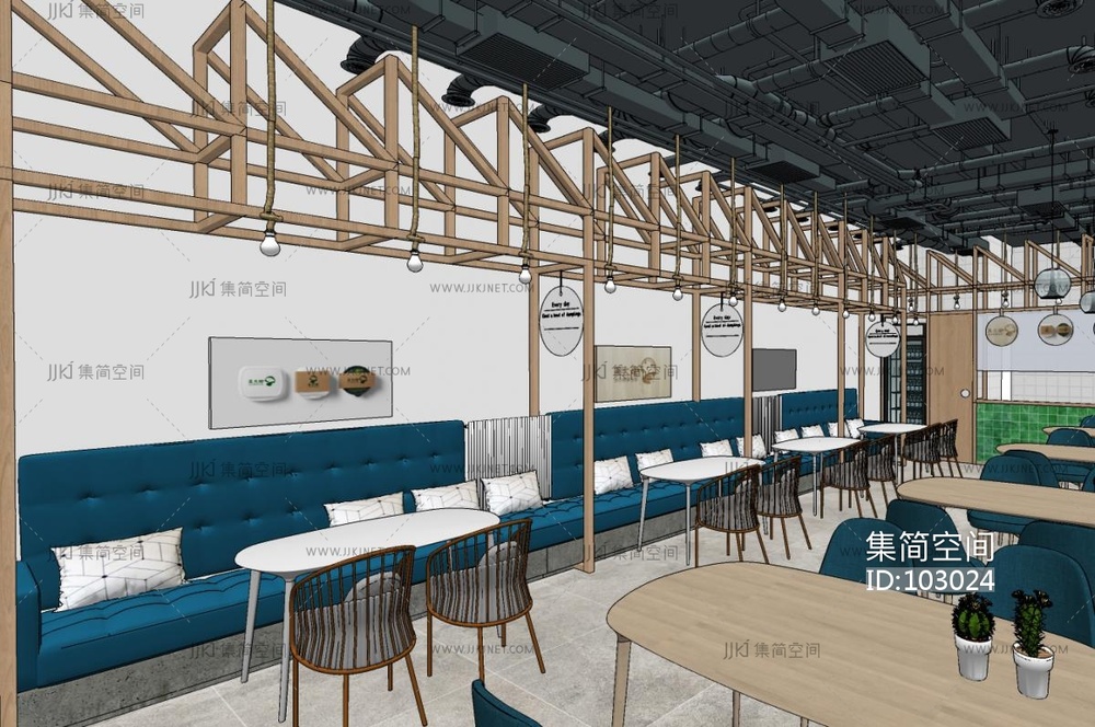 北欧快餐店餐饮餐厅 su草图模型下载 [模型ID:103024]