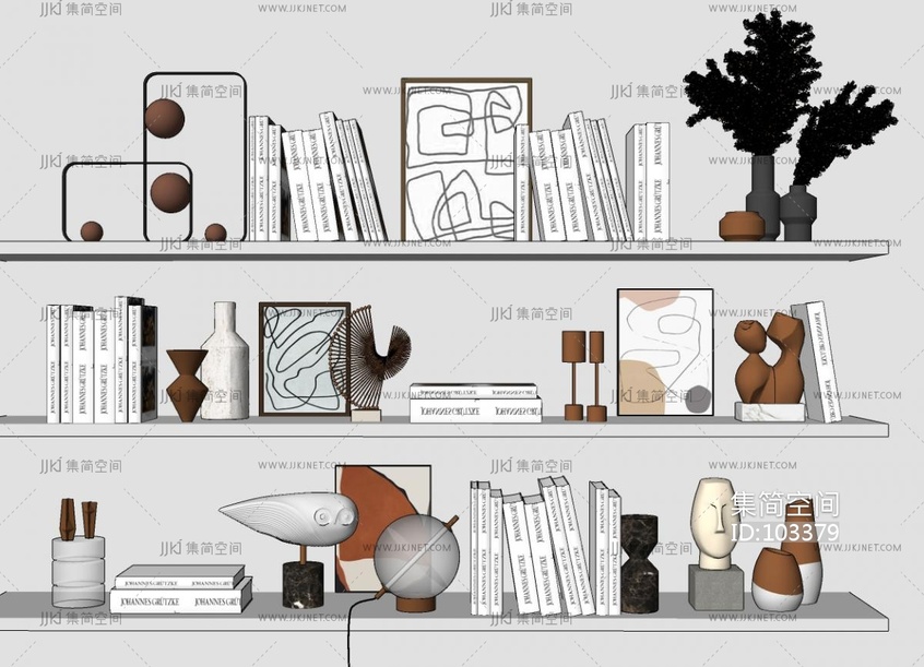 现代书籍花瓶饰品摆件、挂画、台灯雕塑 su草图模型下载 [模型ID:103379]