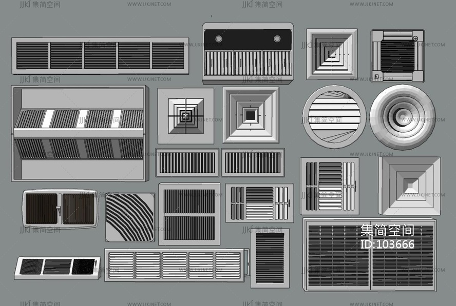现代方形圆形空调出风口 su草图模型下载 [模型ID:103666]