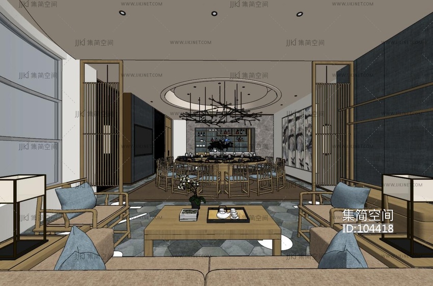 新中式包厢,包间 su草图模型下载 [模型ID:104418]