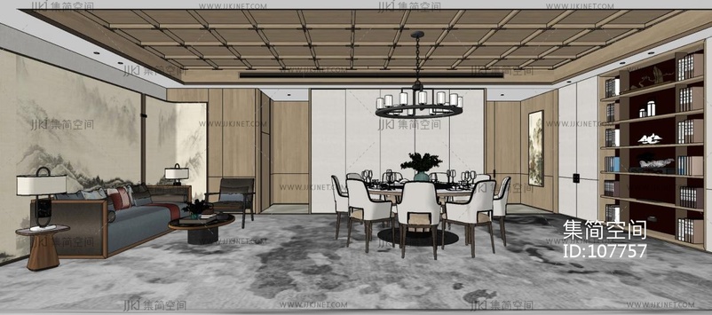 新中式酒店餐厅包厢,包间 su草图模型下载 [模型ID:107757]