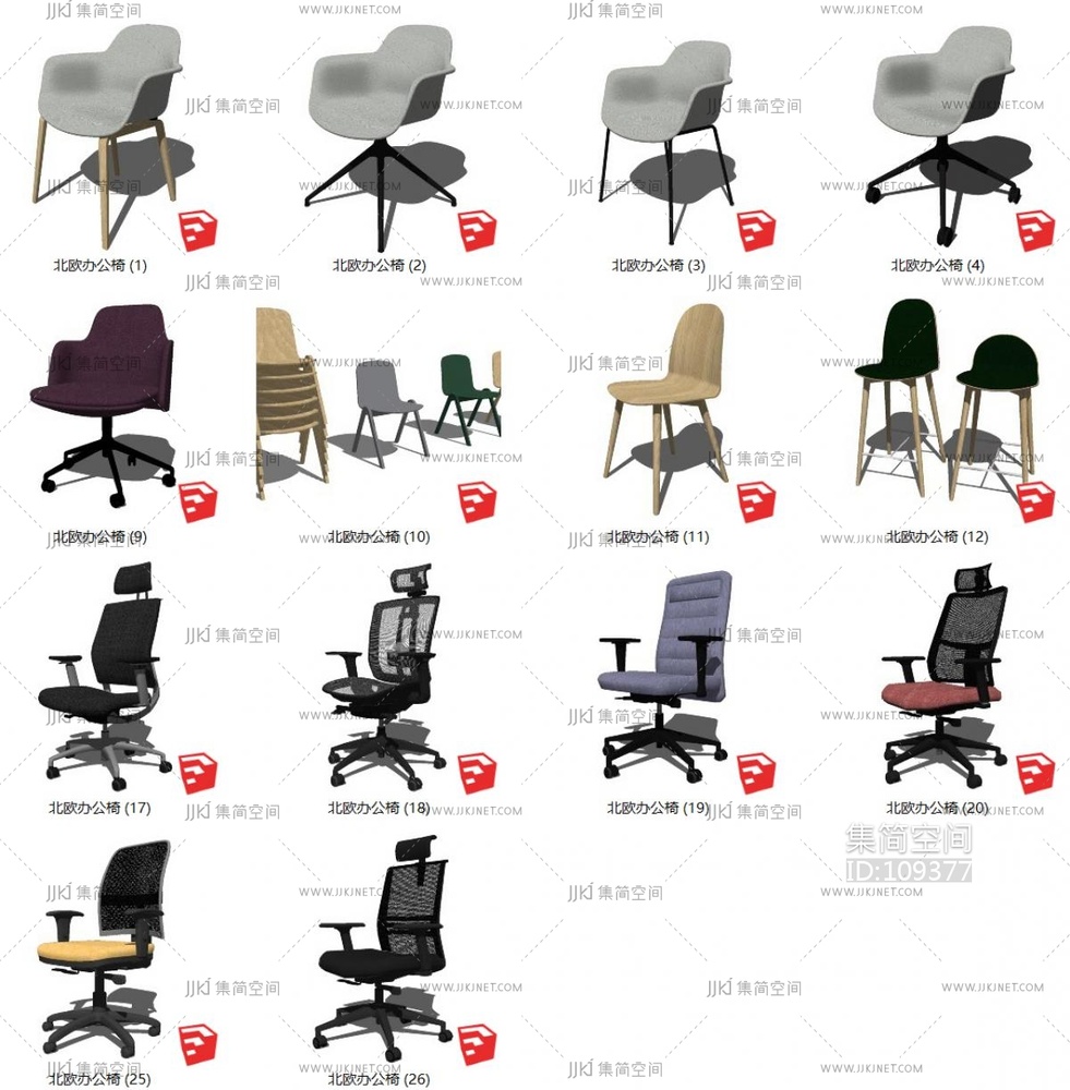 14北欧办公椅转椅1 su草图模型下载 [模型ID:109377]