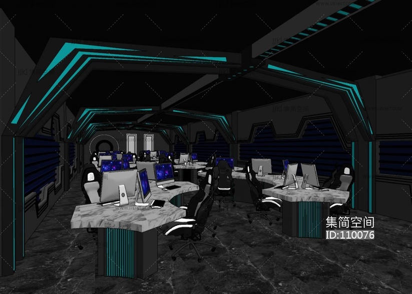 现代科幻电竞网咖,网吧游戏大厅 su草图模型下载 [模型ID:110076]