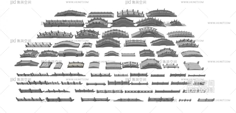 中式石桥拱桥玉石栏杆 su草图模型下载 [模型ID:110913]